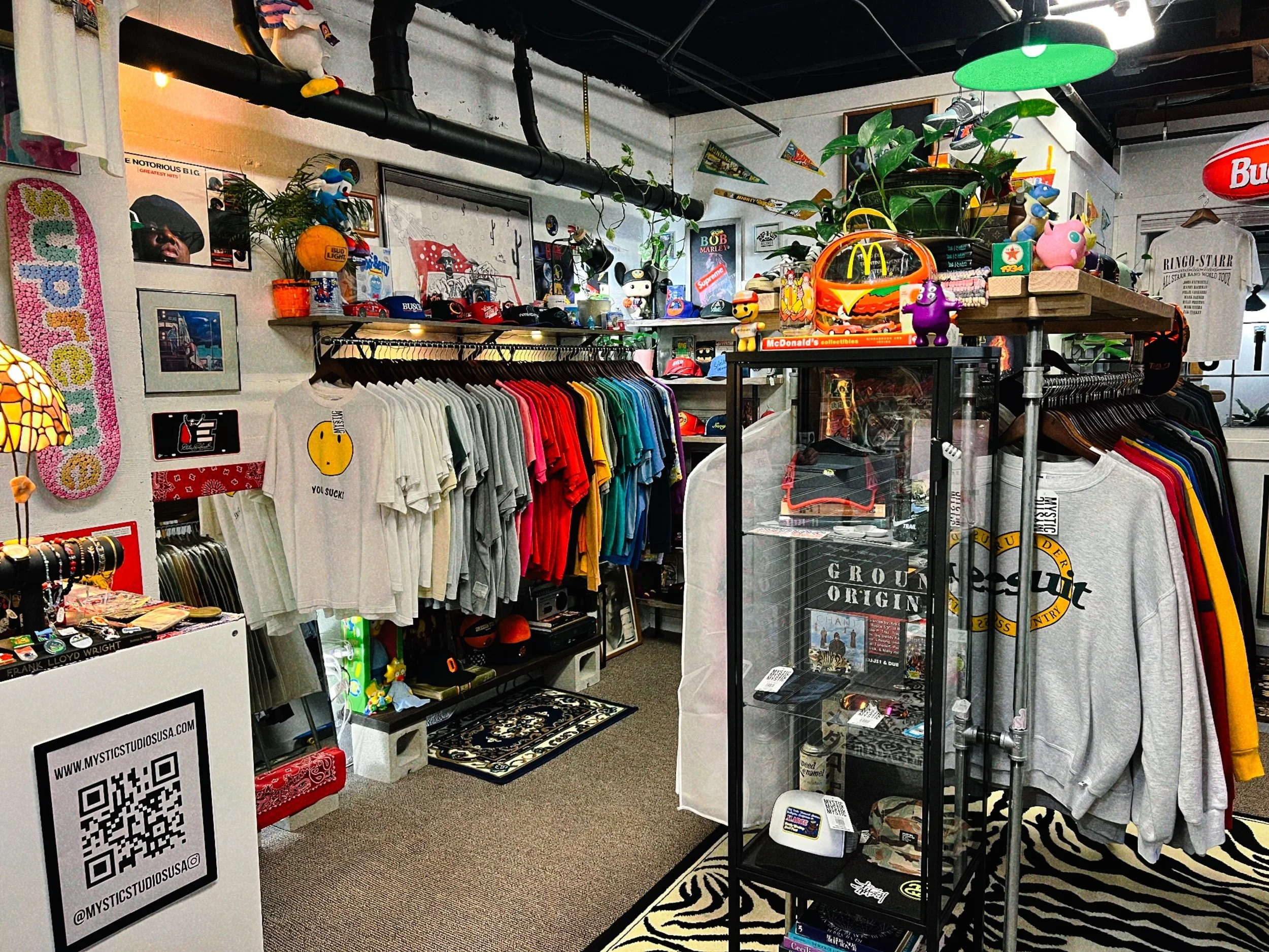 Collection of Vintage Goonies Movie T-Shirts. 10% off if you’re wearing Goonies Gear. Goonies Themed Stickers. Mikey’s Nike shoes on display. Screening of Goonies on vhs all weekend long! 🏴☠️