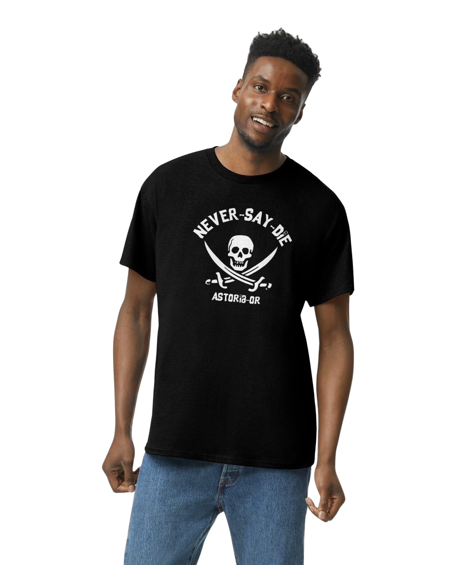 Shoes, apparel and more + "Never Say Die" Astoria, OR T-shirts.